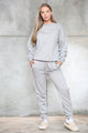 Cropped Hoodie & High Waisted Jogger Loungewear Set. Feat a crop length hoodie with a raw overlocked hem and matching drawstrings, complete with high waisted pocketed joggers